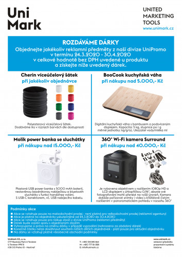 23/03 2020 Objednejte jakékoliv reklamní předměty z naší divize UniPromo v termínu 24.3.2020 - 30.4.2020 a získejte od nás dárky. - Náhled na PDF akční leták zde zpět do archivu