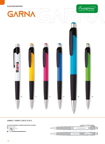 PLASTOVÉ PROPISKY SINCE 2006 GARNA 99 12 34 42 48 58 GARNA | 1105055 | 5,90 Kč | 0,24 € PLASTOVÁ PROPISKA S ČERNÝM GUMOVÝM ÚCHOPEM 137 x 10 mm T1 A, B, C, G, F A: T1, UV1 [45 x 6 mm] UV1 A, B X-20 • C: T1 [15 x 6 mm] F: T1 [25 x 3 mm] 70