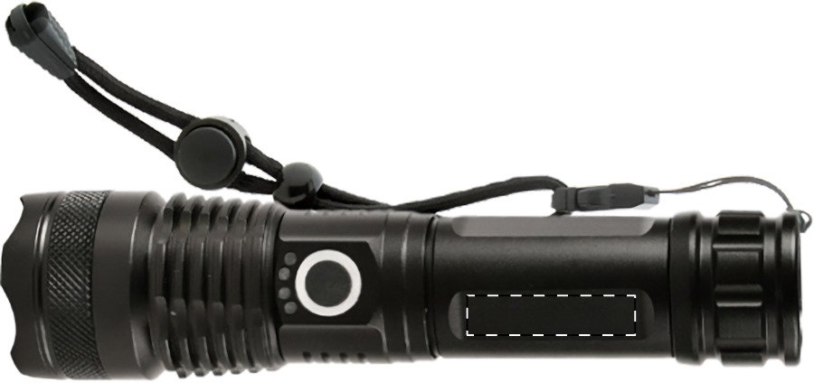 Hliníková baterka s vestavěnou USB dobíjecí baterií (1500 mAh) a popruhem na přenášení. Se zoomovatelným vysoce výkonným COB světlem. S vysokým, středním, nízkým a blikajícím světlem. Včetně USB nabíjecího kabelu.