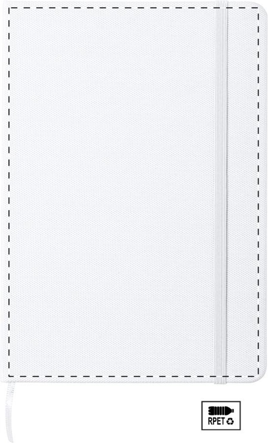 RPET blok A5 potažený polyesterem s 80 linkovanými listy, záložkou a gumičkou.