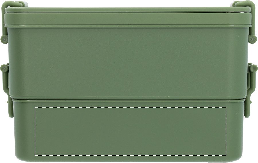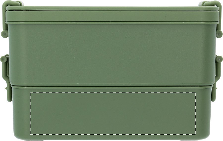 Box na jídlo z PP plastu se sadou příborů (vidlička, lžíce a nůž), zapínáním na přezku a 2 přihrádkami (1000 ml a 800 ml). Stohovatelný design pro kompaktní skladování.