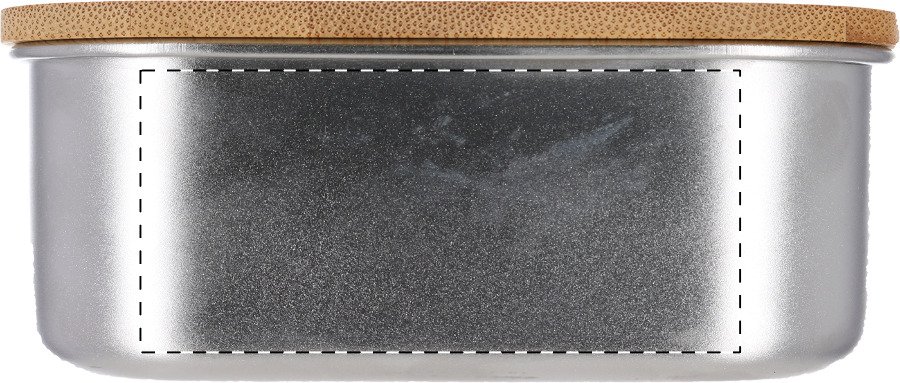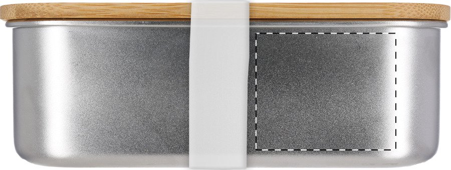 Box na jídlo z nerez oceli a s víčkem z přírodního bambusu a silikonovým páskem, 800 ml.