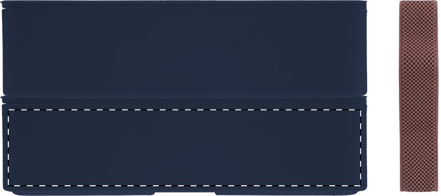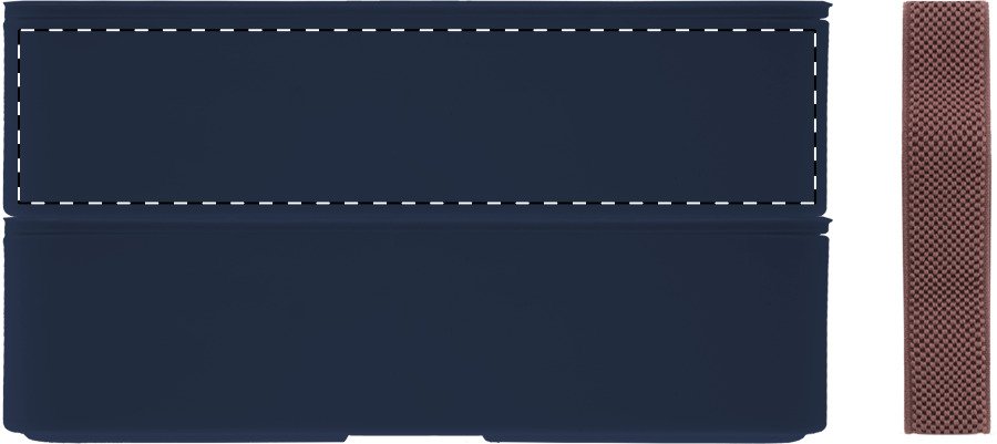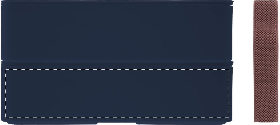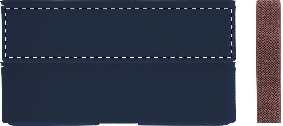 Box na jídlo z PP plastu se sadou příborů (vidlička, lžíce a nůž), bambusovým víkem a elastickým popruhem. Se 2 přihrádkami o objemu 700 ml.