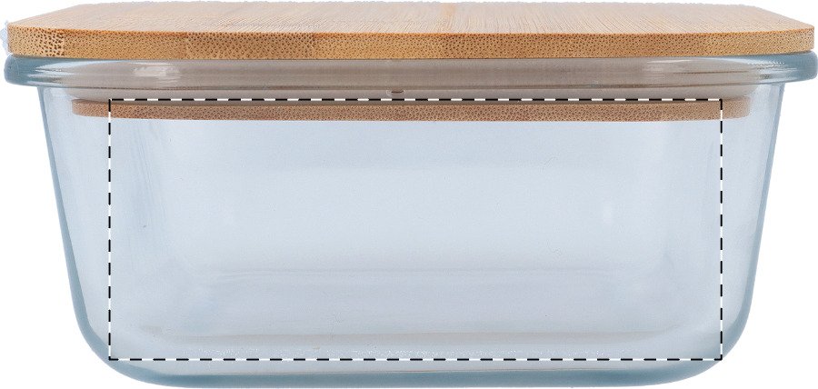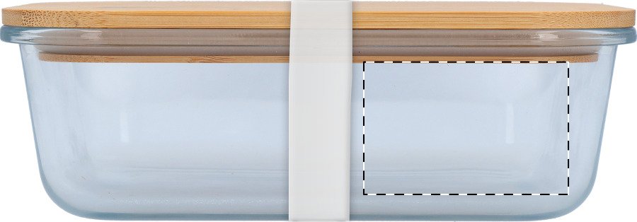 Skleněný box na jídlo s víkem z přírodního bambusu a silikonovým páskem, 800 ml.