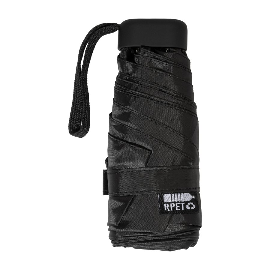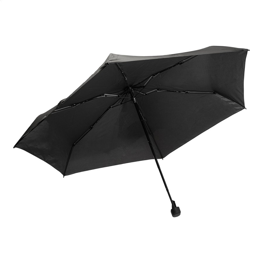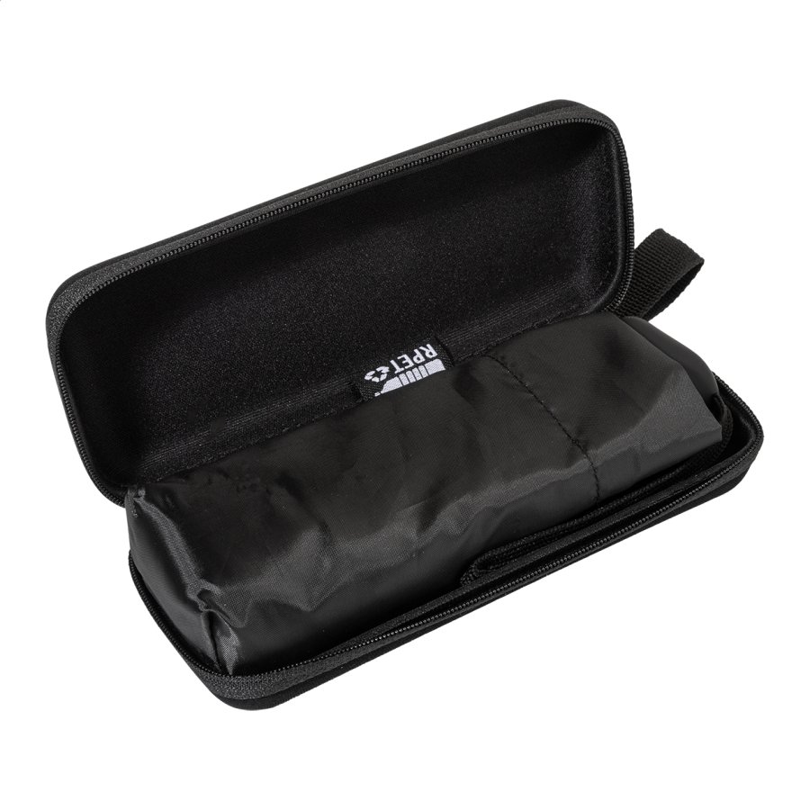 Manuální, větruodolný 3-skládací mini deštník se 6 panely v barevně sladěném pouzdře a tvrdým pouzdrem z EVA na zip. S kovovým rámem, žebry z sklolaminátu a kompaktní rukojetí s poutkem na ruku. 190T RPET pongee s charakteristickým RPET štítkem.