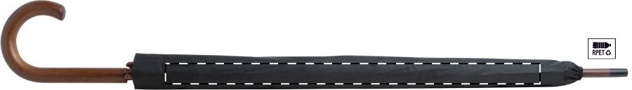 Automatický, větru odolný deštník s 8 panely, dřevěnou rukojetí, tyčkou a konci, kovovým rámem a sklolaminátovými žebry. 190T RPET pongee. Ve značkovém obalu, s etiketou s označením RPET. Značkový produkt André Philippe.