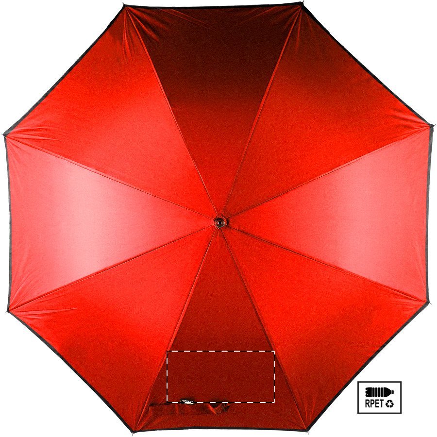 Automatický, větruodolný deštník s 8 panely a reflexním lemem. S kovovým rámem, sklolaminátovými žebry a EVA rukojetí. Pongee 190T RPET. S výrazným štítkem RPET. Pouze pro propagační účely se produkt nekvalifikuje jako osobní ochranný prostředek.