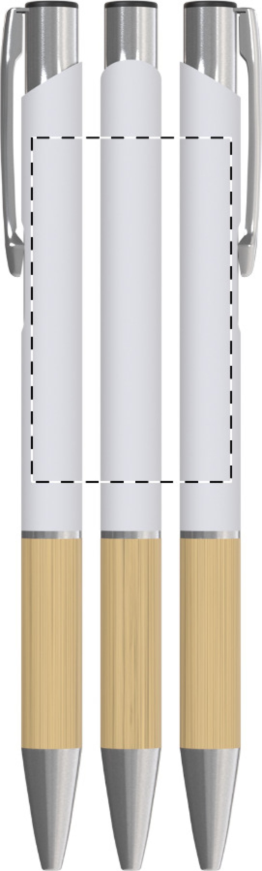 Hliníkové kuličkové pero s bambusovým úchopem, pogumovaným povrchem a modrou náplní. Se speciální vrstvou pro zrcadlové laserové gravírování.