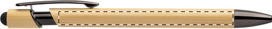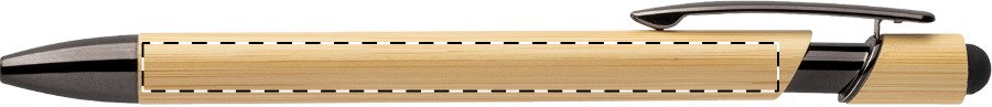 Bambusové dotykové kuličkové pero s lesklými kovovými detaily a barevným dotykovým stylusem. S modrou náplní.