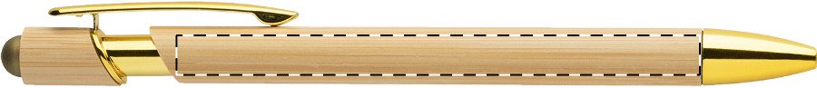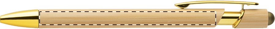 Bambusové dotykové kuličkové pero s lesklými kovovými detaily a barevným dotykovým stylusem. S modrou náplní.