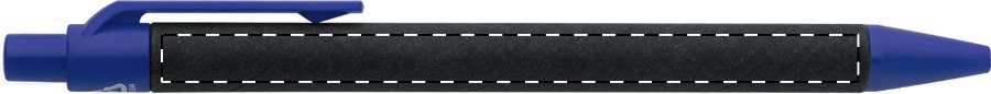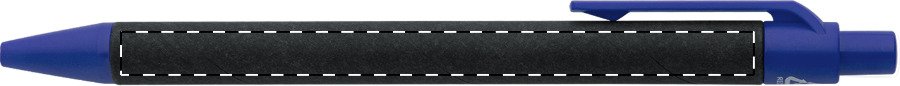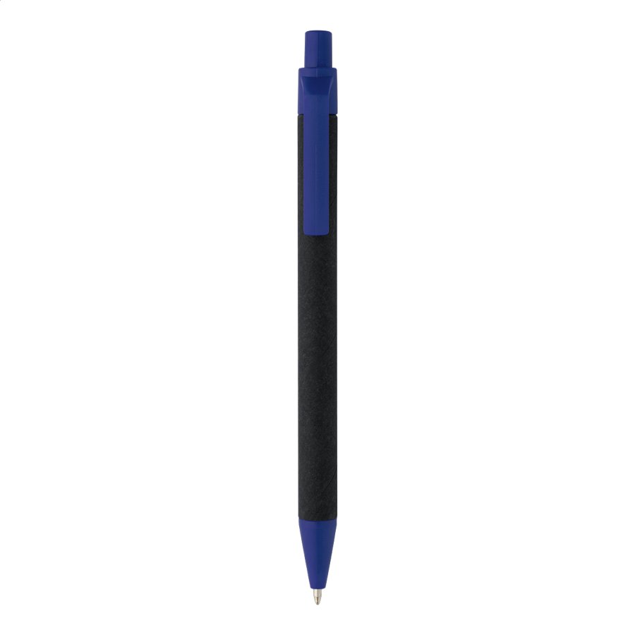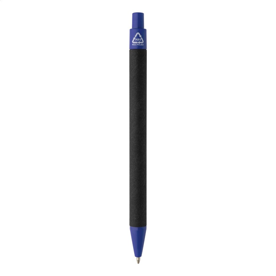 Kuličkové pero z recyklovaného papíru s černým tělem a recyklovanými ABS díly. S modrou náplní.