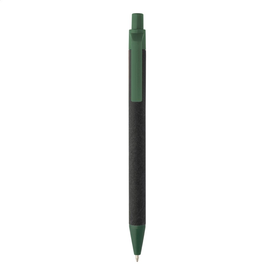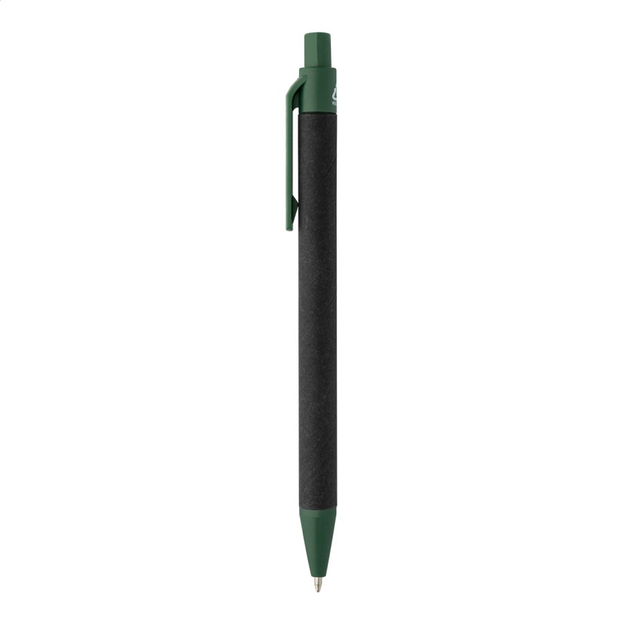 Kuličkové pero z recyklovaného papíru s černým tělem a recyklovanými ABS díly. S modrou náplní.