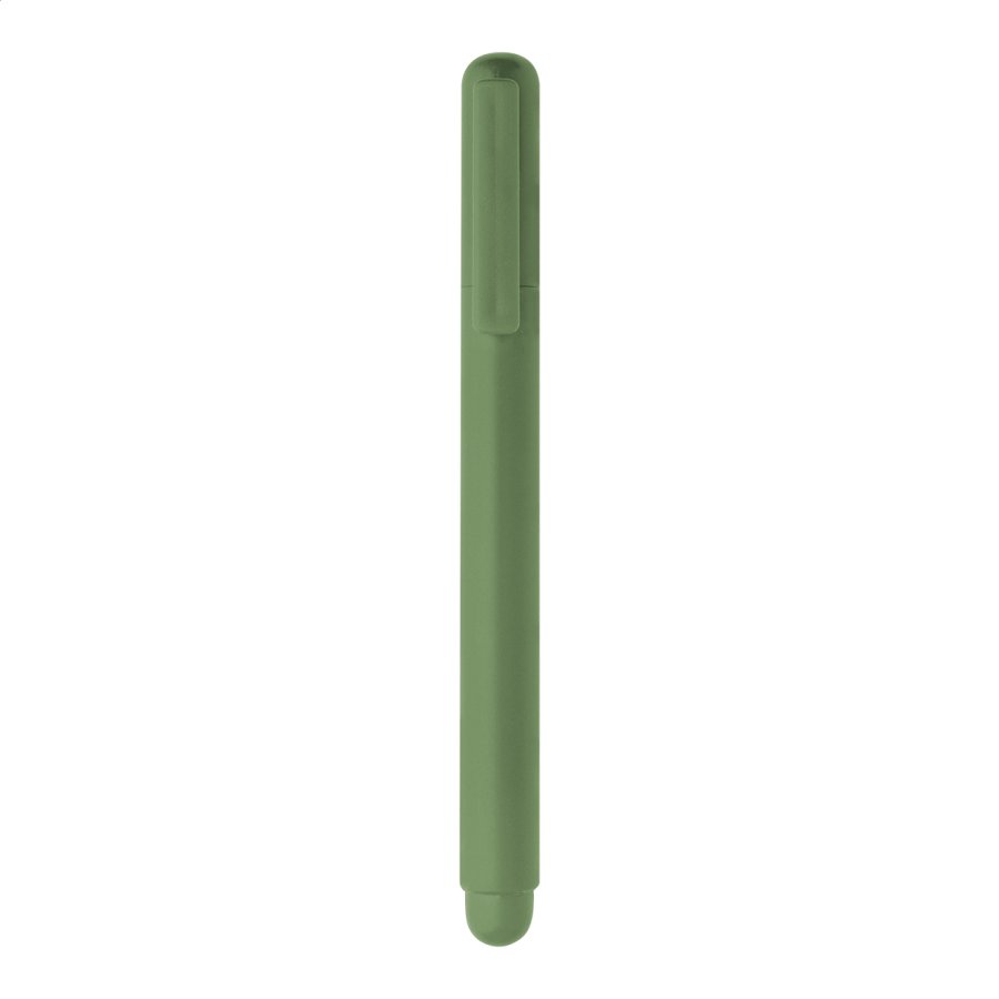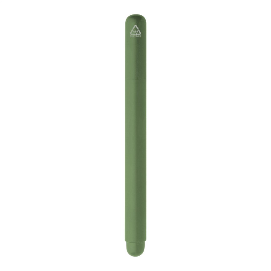 Gelové pero z recyklovaného ABS materiálu s víčkem. S modrou gelovou náplní.