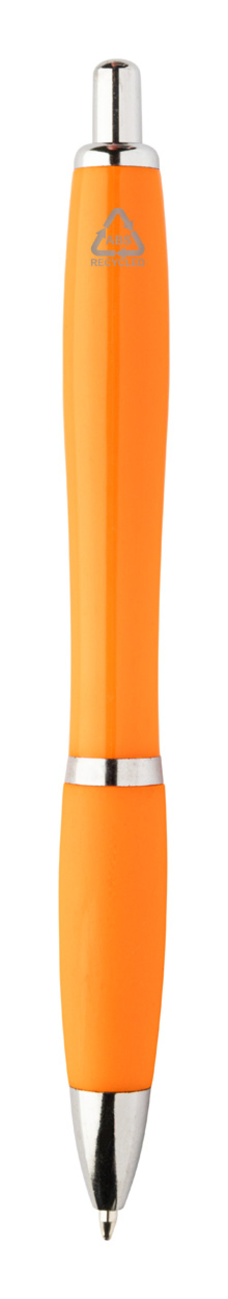 Kuličkové pero z recyklovaného ABS plastu s úchopem v odpovídající barvě a chromovanými částmi. S modrou náplní.