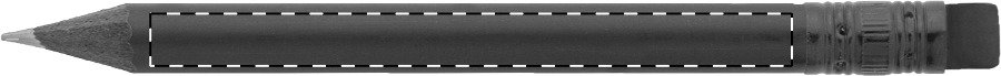 Černá dřevěná mini tužka v metalickém provedení s černou gumou. Ořezaná, třída HB.