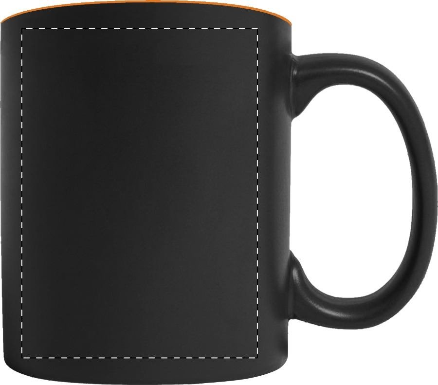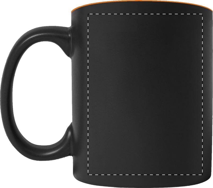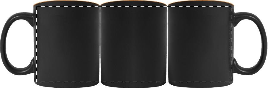 Černý keramický hrnek s barevným vnitřkem, 350 ml. Speciální povrch pro laser, kdy vygravírované logo má stejnou barvu jako vnitřek hrnku. V dárkové krabičce.