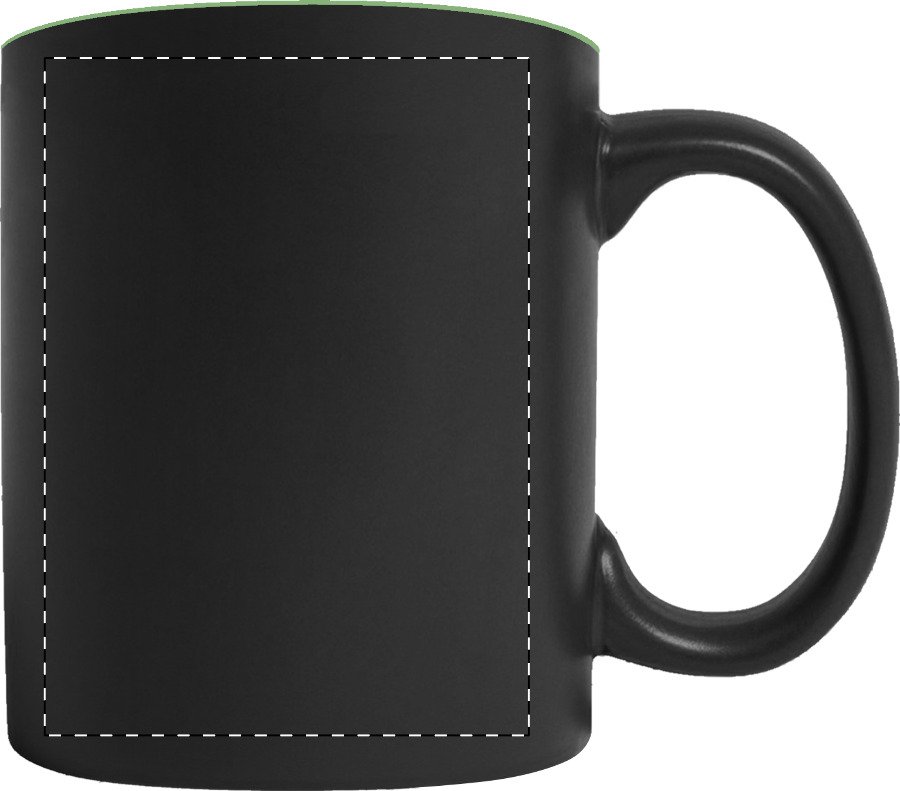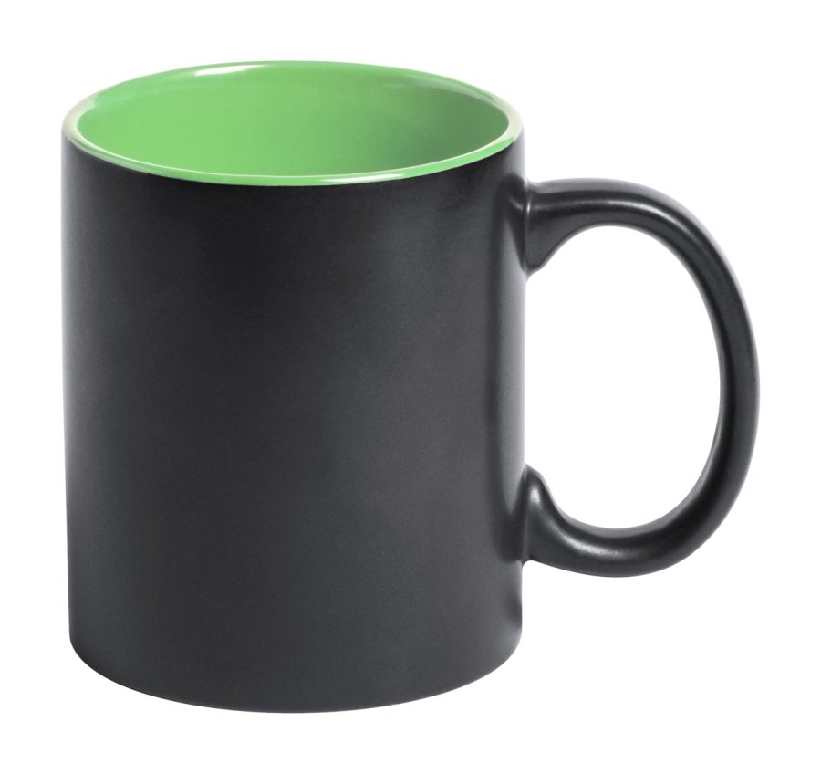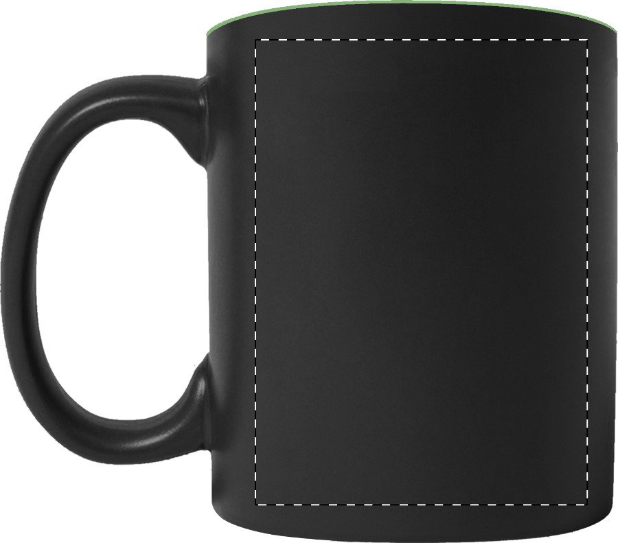Černý keramický hrnek s barevným vnitřkem, 350 ml. Speciální povrch pro laser, kdy vygravírované logo má stejnou barvu jako vnitřek hrnku. V dárkové krabičce.