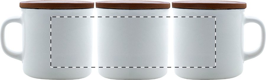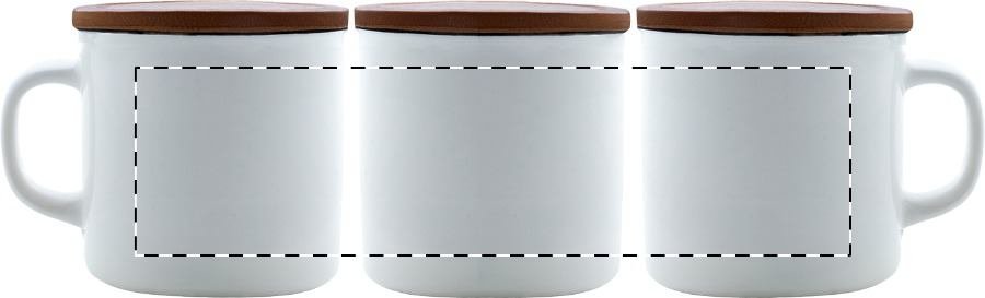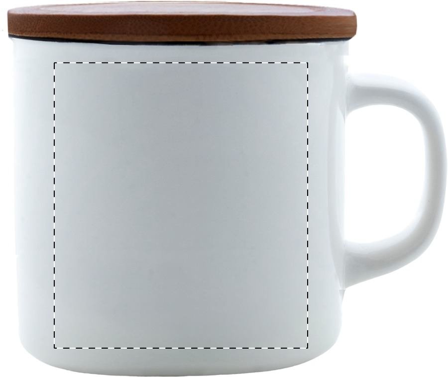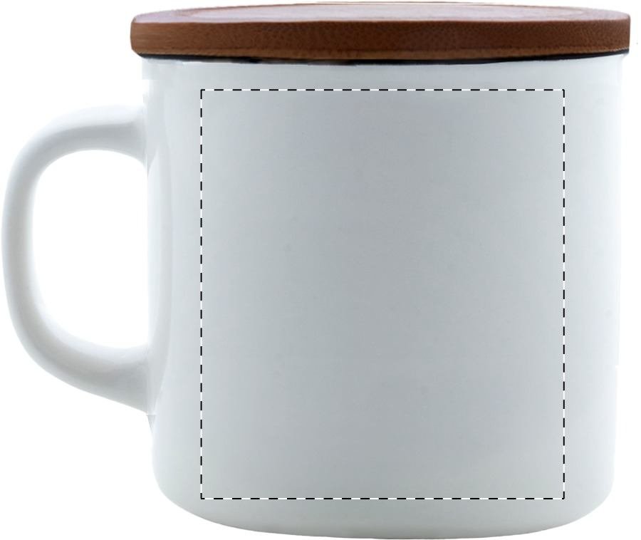 Vysoce kvalitní porcelánový retro hrnek v bílé barvě s černým okrajem a bambusovým podtáckem, 320 ml. V dárkové krabičce.
