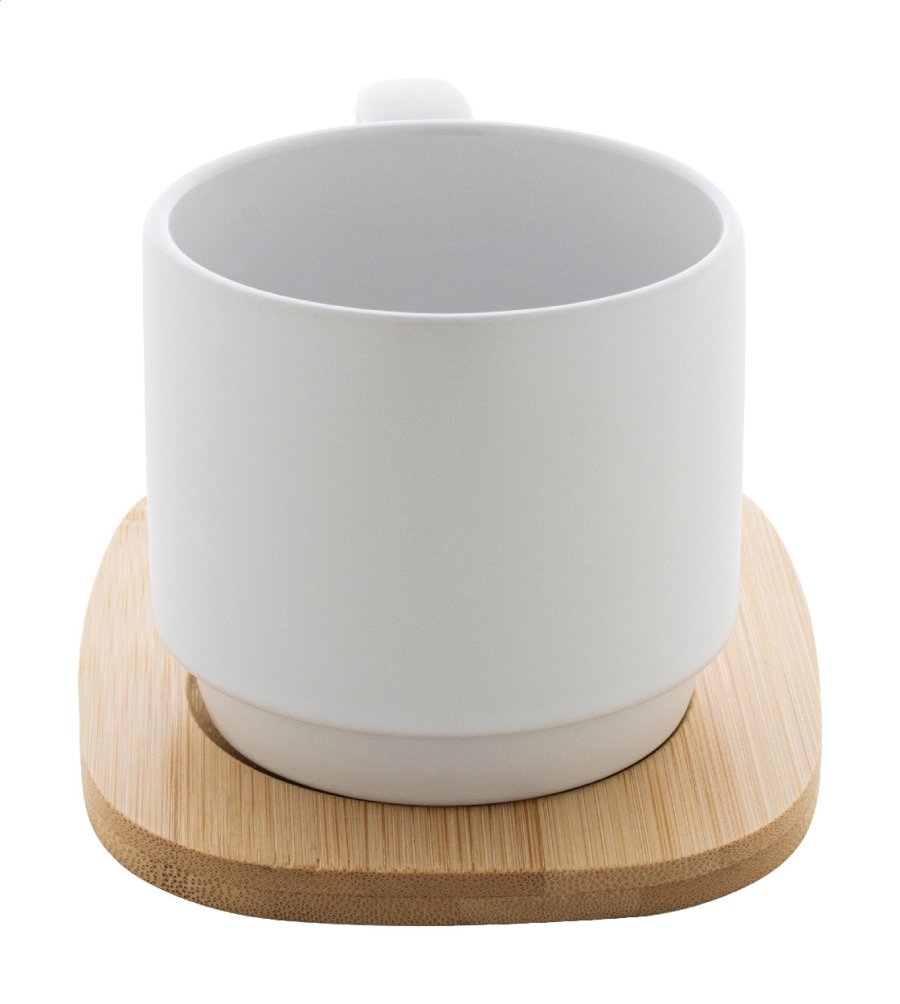 Vysoce kvalitní keramický hrnek s matným vnějším a lesklým vnitřním povrchem. Včetně bambusového servírovacího podnosu. 220 ml. V krabičce z kraftového papíru.