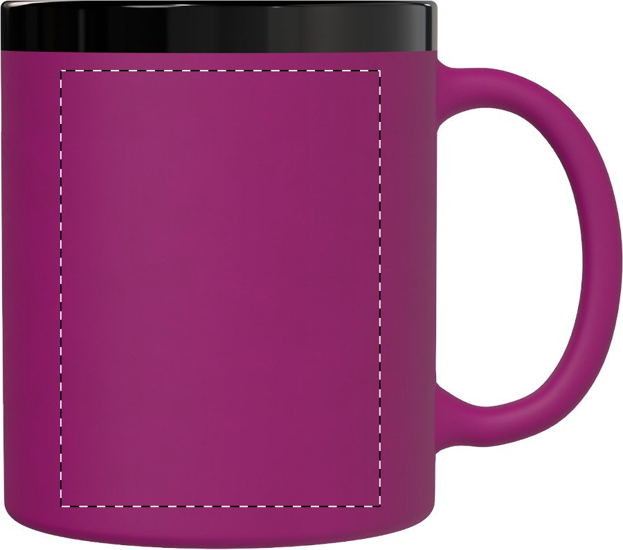 Keramický hrnek s měkkým pogumovaným povrchem a černým vnitřkem a okrajem, 300 ml. Se speciálním povrchem pro gravírování, gravírované logo ladí s barvou na vnitřní straně. V krabičce z kraftového papíru.
