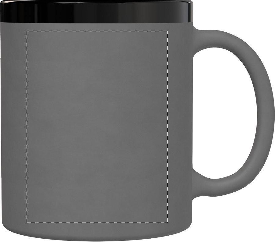 Keramický hrnek s měkkým pogumovaným povrchem a černým vnitřkem a okrajem, 300 ml. Se speciálním povrchem pro gravírování, gravírované logo ladí s barvou na vnitřní straně. V krabičce z kraftového papíru.