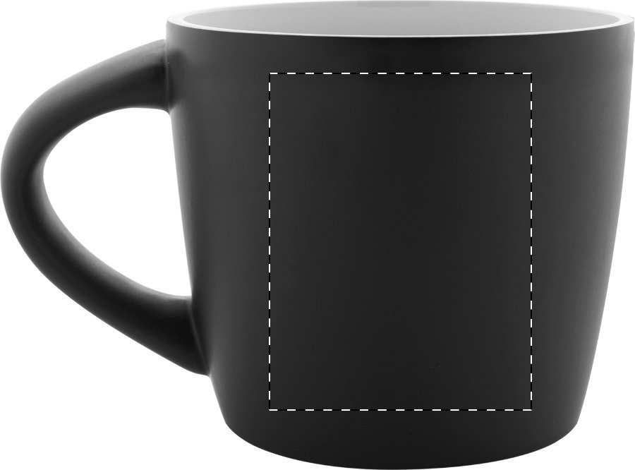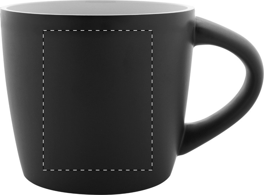 Vysoce kvalitní keramický hrnek s matnou černou vnější a lesklou vnitřní povrchovou úpravou, 300 ml. V kraftové papírové krabičce.