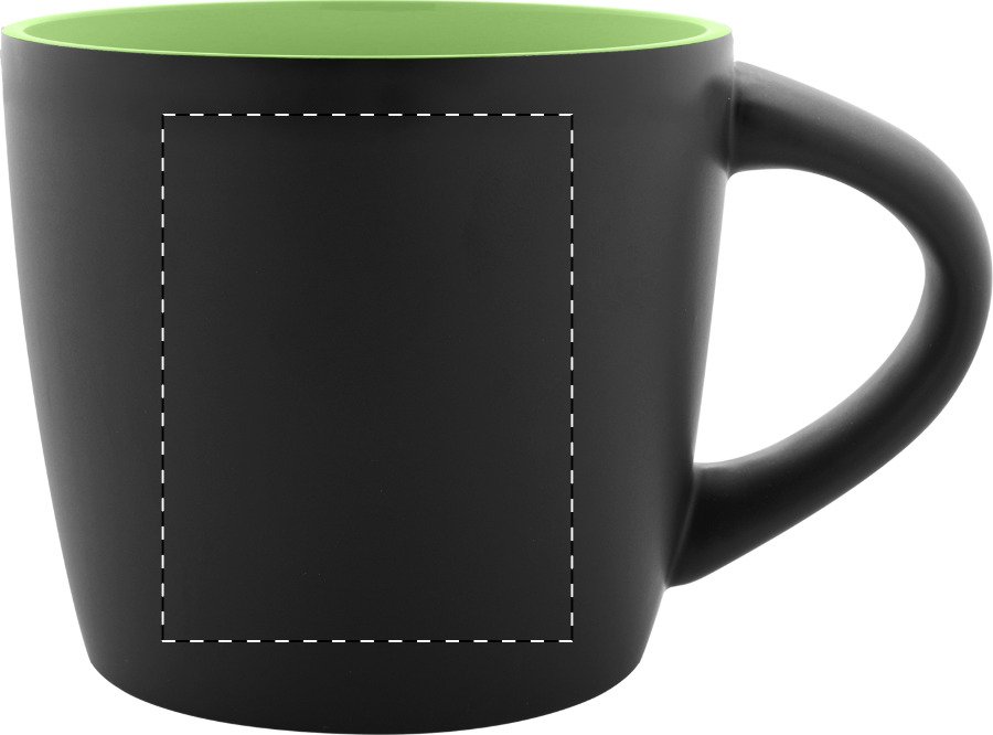 Vysoce kvalitní keramický hrnek s matnou černou vnější a lesklou vnitřní povrchovou úpravou, 300 ml. V kraftové papírové krabičce.