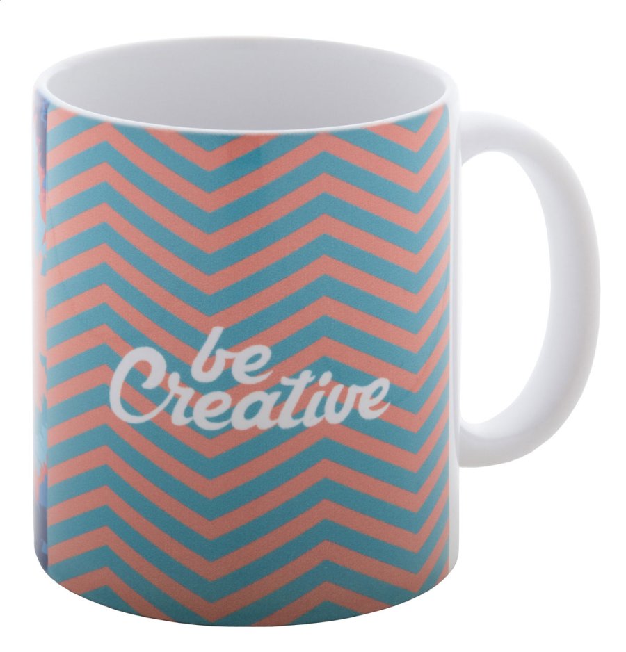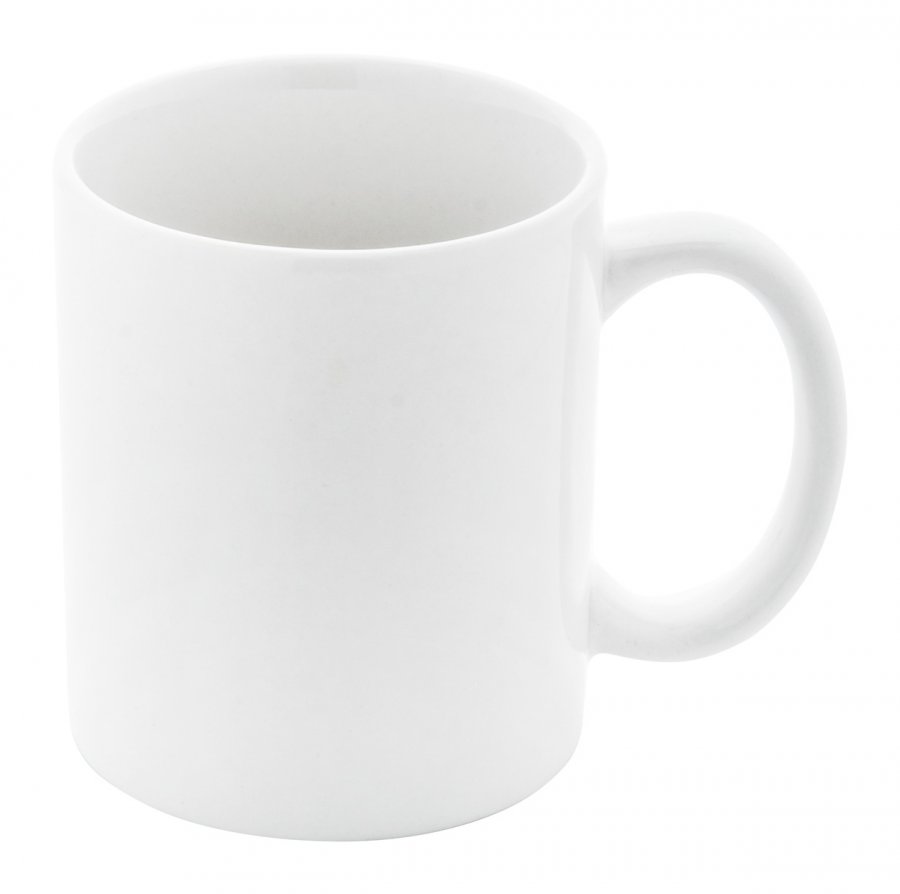 Bílý keramický hrnek pro sublimační potisk vhodný do myčky na nádobí, 300 ml. V bílé papírové krabici.
