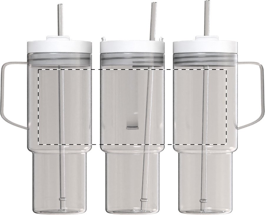 Jednostěnný cestovní hrnek z RPET s PP víčkem na pití a brčkem v odpovídající barvě. 1200 ml.