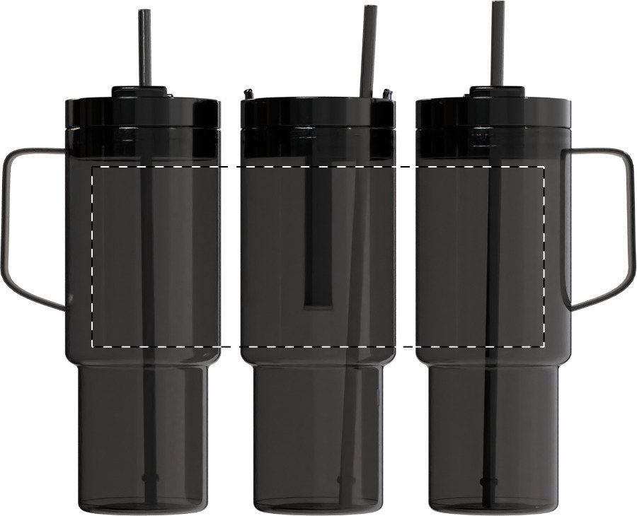 Jednostěnný cestovní hrnek z RPET s PP víčkem na pití a brčkem v odpovídající barvě. 1200 ml.