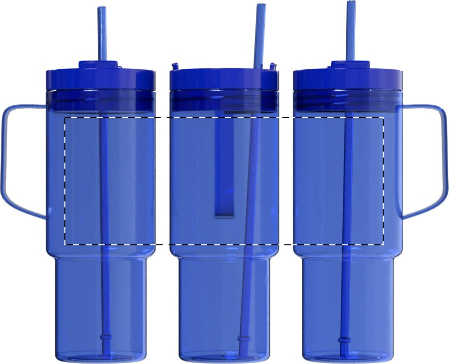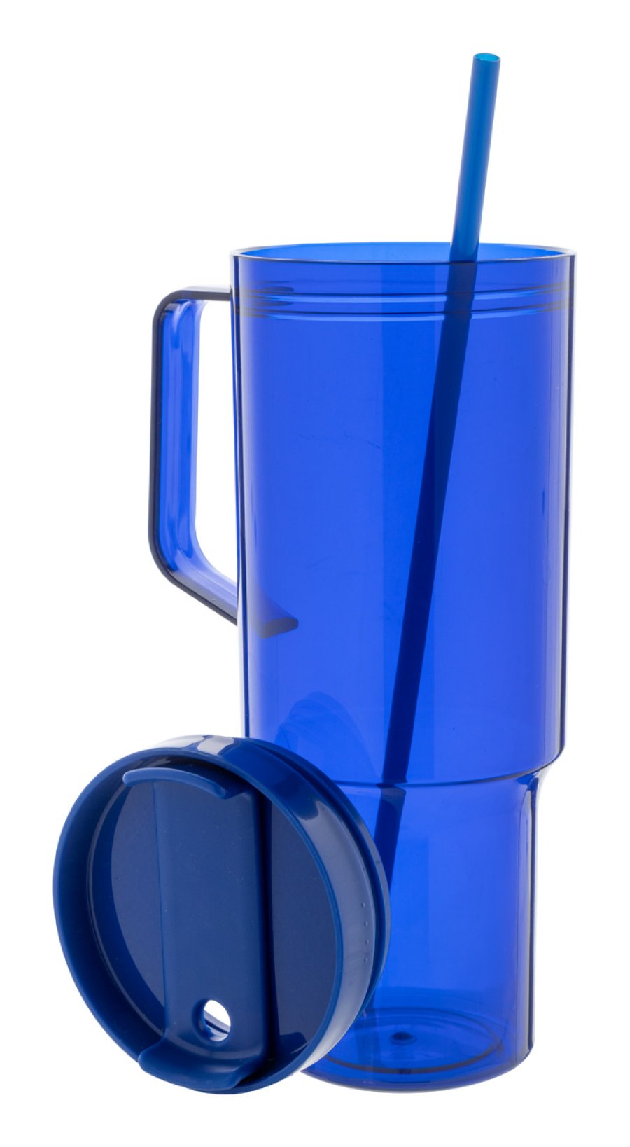 Jednostěnný cestovní hrnek z RPET s PP víčkem na pití a brčkem v odpovídající barvě. 1200 ml.
