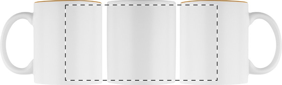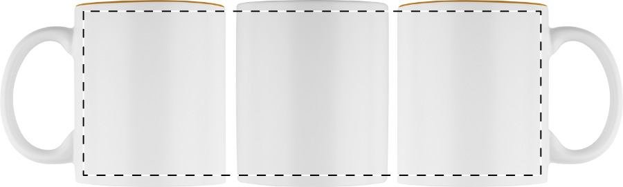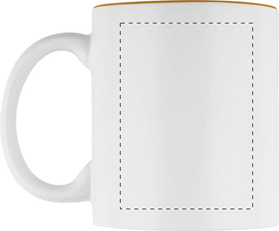 Witte keramiek mok met gekleurde binnenkant, de gegraveerd kleur is hetzelfde als de kleur van de binnenkant. In geschenkverpakking. Inhoud: 350 ml.