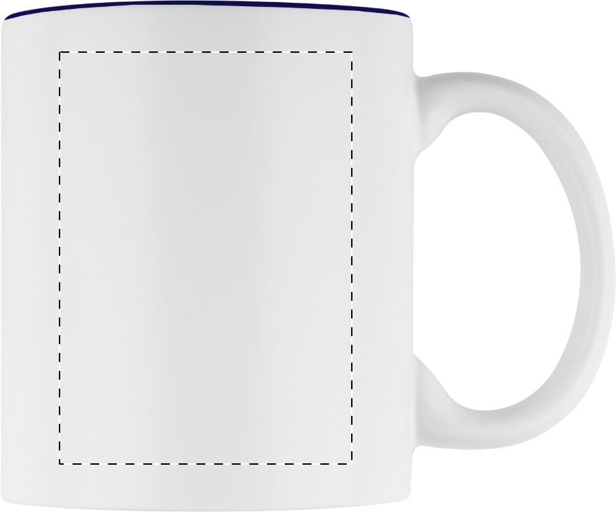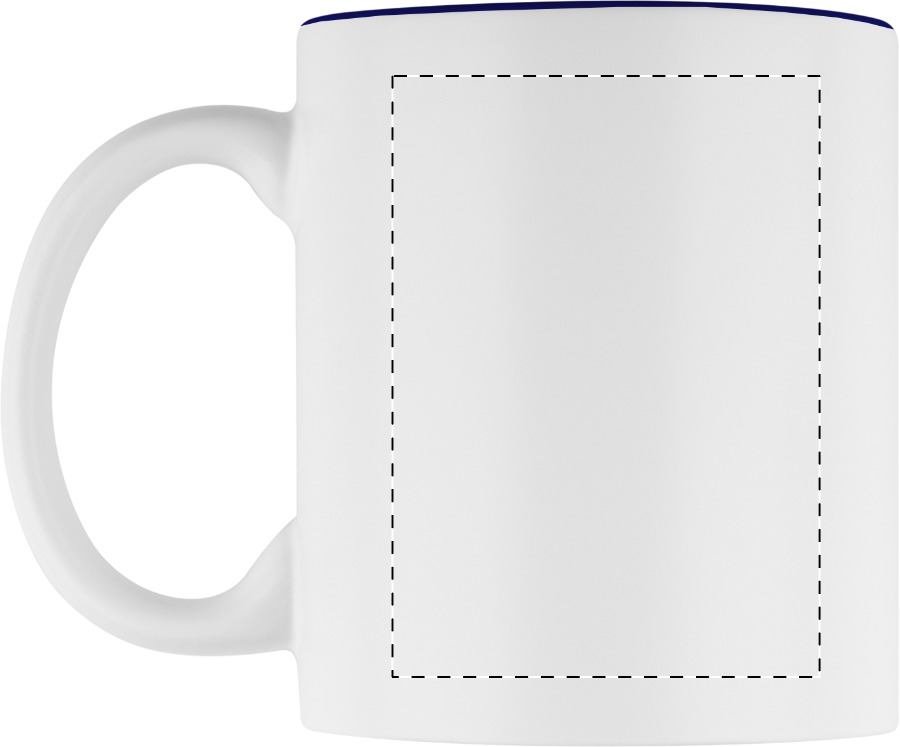Witte keramiek mok met gekleurde binnenkant, de gegraveerd kleur is hetzelfde als de kleur van de binnenkant. In geschenkverpakking. Inhoud: 350 ml.