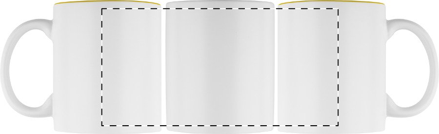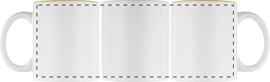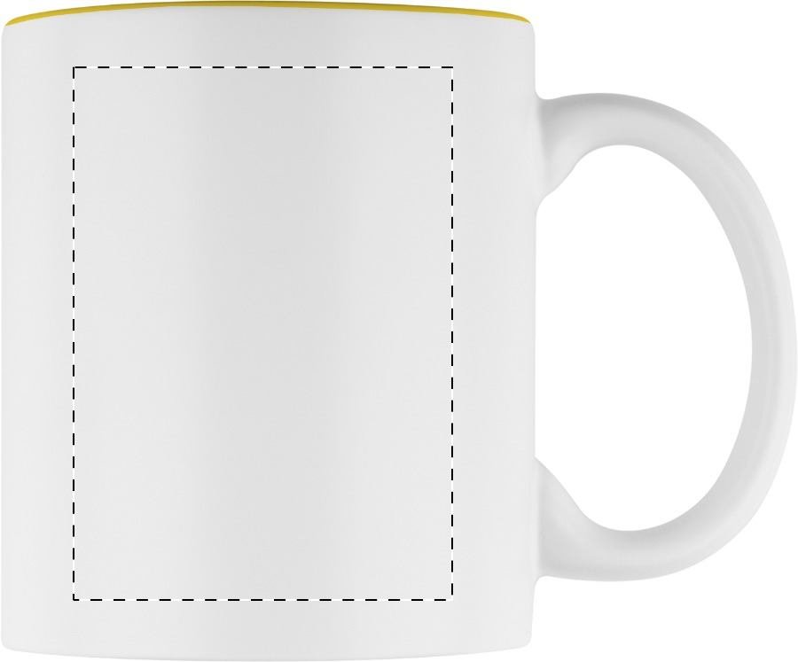 Witte keramiek mok met gekleurde binnenkant, de gegraveerd kleur is hetzelfde als de kleur van de binnenkant. In geschenkverpakking. Inhoud: 350 ml.
