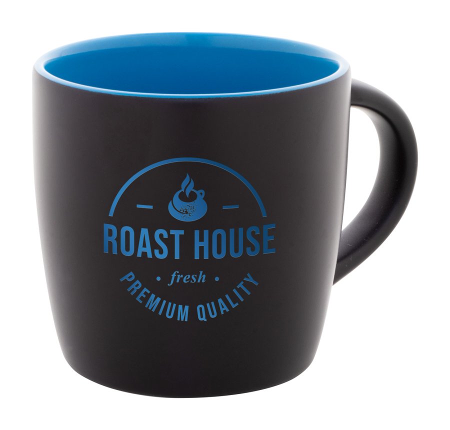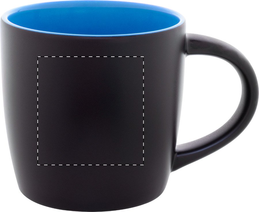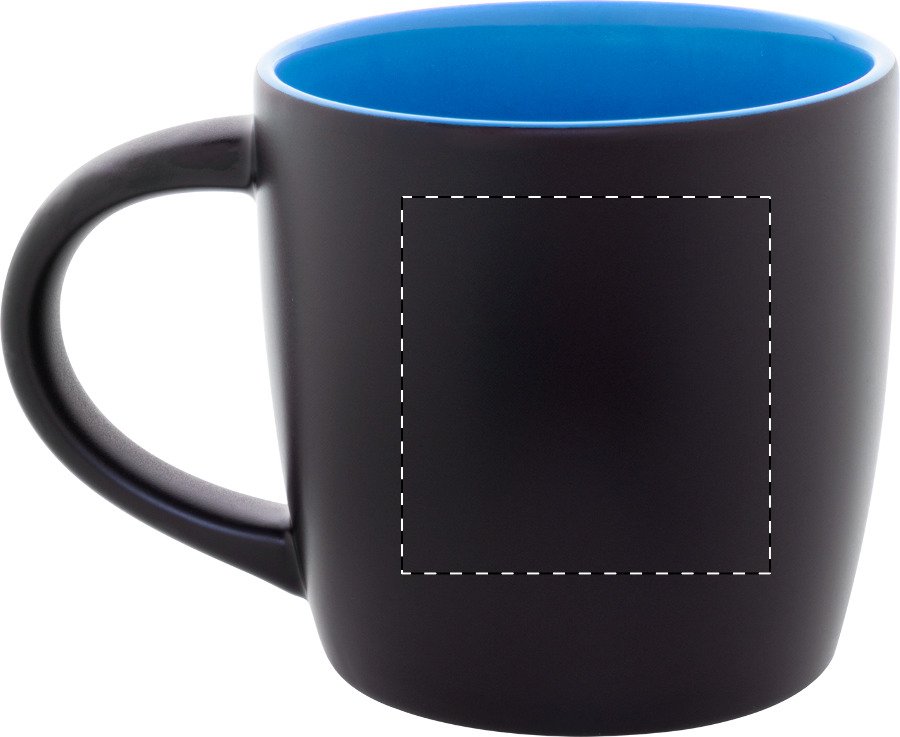 Černý keramický hrnek s barevným vnitřkem, 300 ml. Se speciální vrstvou pro gravírování, gravírované logo ladí s vnitřní barvou. V kraftové papírové krabici.