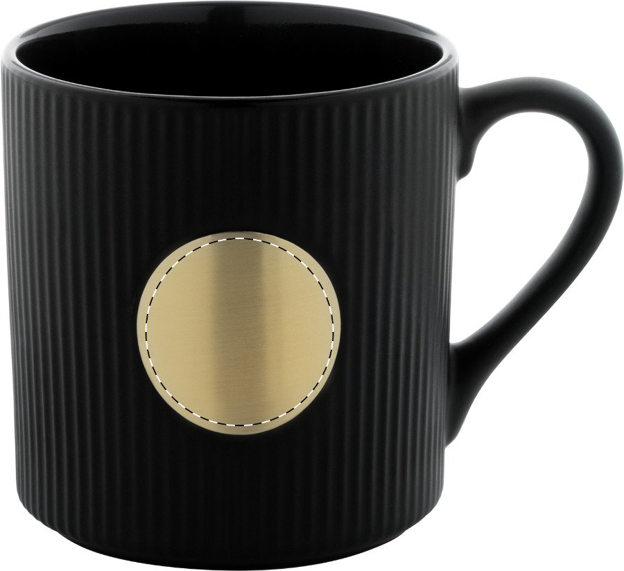 Vysoce kvalitní keramický hrnek s mosaznou destičkou pro gravírování loga. S matnou vnější a lesklou vnitřní povrchovou úpravou. 330 ml. V kraftové papírové krabici.