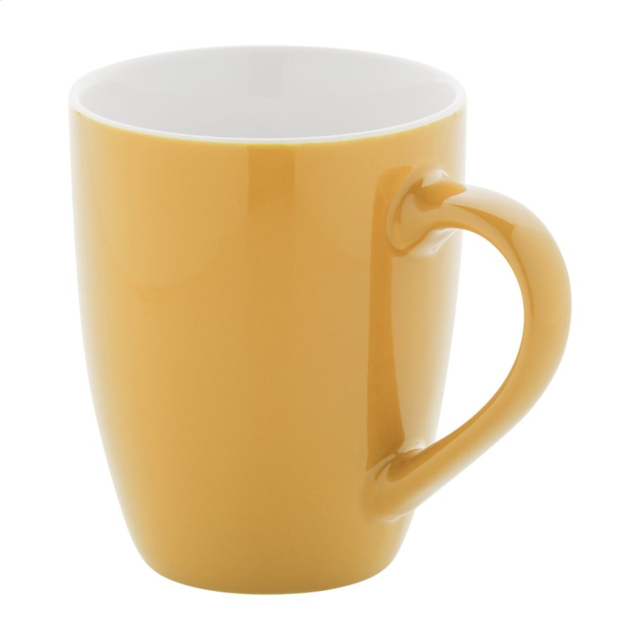 Vysoce kvalitní barevný keramický hrnek s bílým vnitřkem, 340 ml. V kraftové papírové krabici.