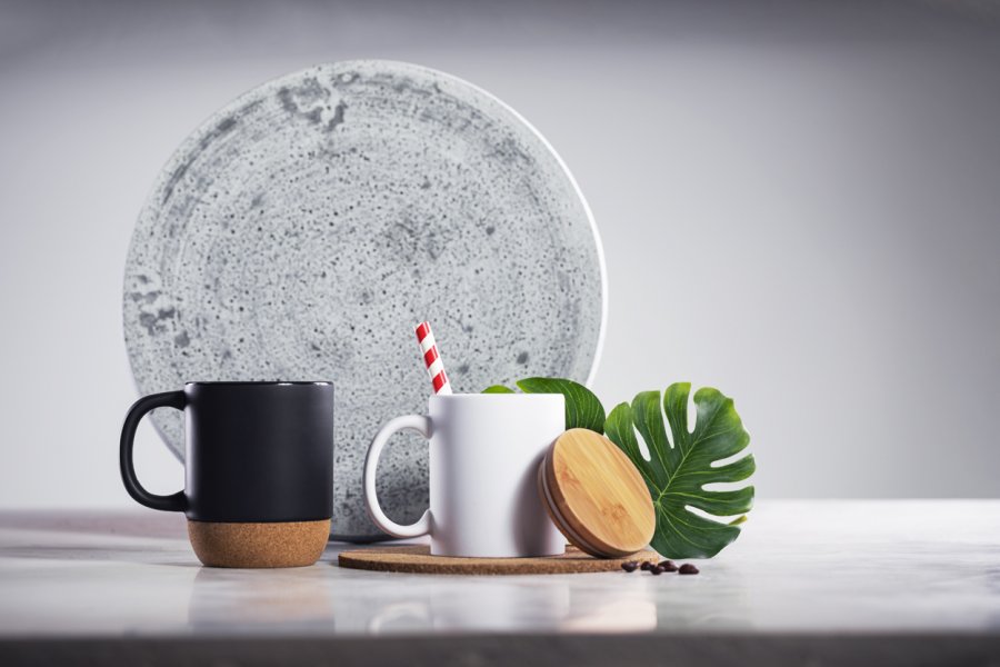 Keramický hrnek s přírodní korkovou základnou, 420 ml. V krabici z kraftového papíru.