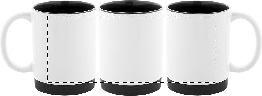 Keramický hrnek na sublimaci s barevným vnitřkem a silikonovým kroužkem v odpovídající barvě, 300 ml. V bílé papírové krabici.