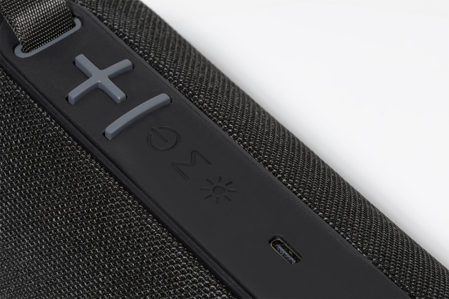 Bezdrátový reproduktor potažený polyesterovou tkaninou s vícebarevným LED světlem a popruhem na přenášení. Se 2 reproduktory, funkcí hands-free volání a vestavěnou dobíjecí baterií (1200 mAh). Včetně nabíjecího kabelu USB.
