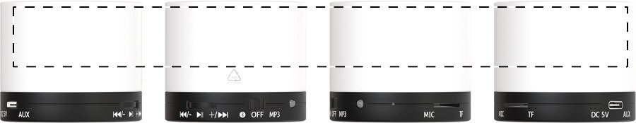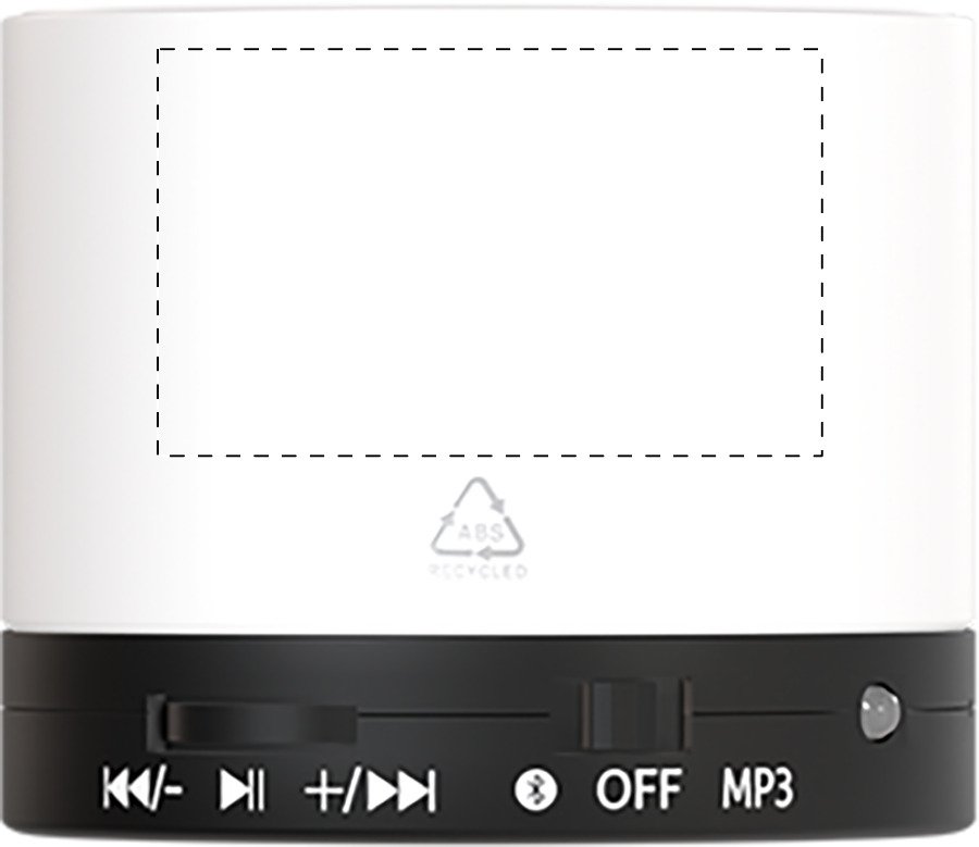 Bezdrátový reproduktor z recyklovaného ABS v pogumovaném pouzdře s kovovou síťovinou a dobíjecí baterií (300 mAh). S funkcí handsfree hovorů a přehrávání MP3 z micro SD karty. Včetně nabíjecího kabelu USB.
