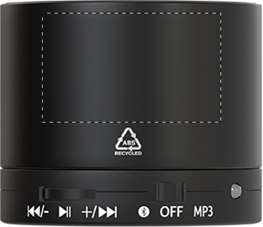 Bezdrátový reproduktor z recyklovaného ABS v pogumovaném pouzdře s kovovou síťovinou a dobíjecí baterií (300 mAh). S funkcí handsfree hovorů a přehrávání MP3 z micro SD karty. Včetně nabíjecího kabelu USB.