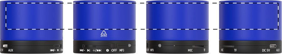 Bezdrátový reproduktor z recyklovaného ABS v pogumovaném pouzdře s kovovou síťovinou a dobíjecí baterií (300 mAh). S funkcí handsfree hovorů a přehrávání MP3 z micro SD karty. Včetně nabíjecího kabelu USB.