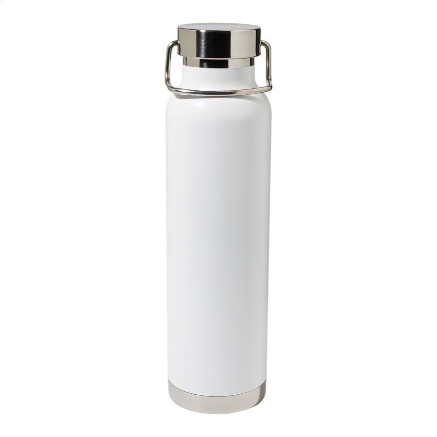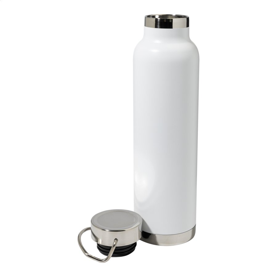 Dvoustěnná nerezová, mědí izolovaná termoska s přenosným víčkem, 650 ml. Měděná izolace udrží nápoje horké 12 a studené 24 hodin.