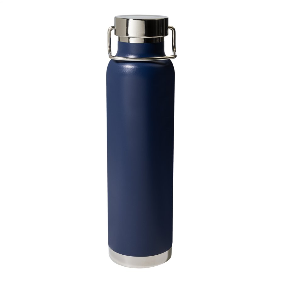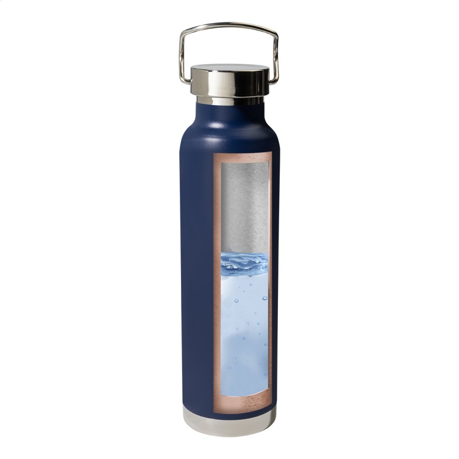 Dvoustěnná nerezová, mědí izolovaná termoska s přenosným víčkem, 650 ml. Měděná izolace udrží nápoje horké 12 a studené 24 hodin.