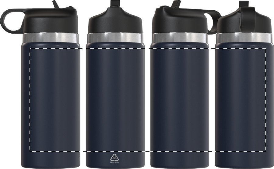 Dvoustěnná vakuová láhev z recyklované nerezové oceli s odklápěcím víčkem z PP, rukojetí a integrovaným brčkem. 500 ml.