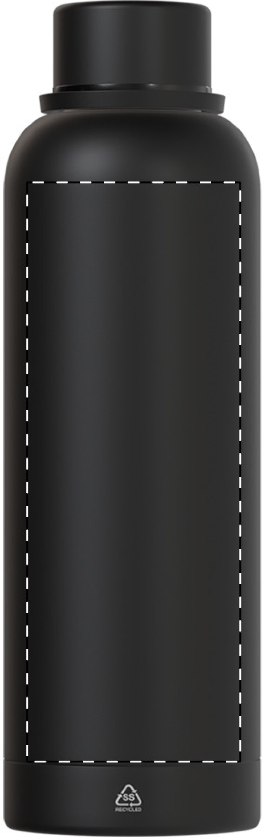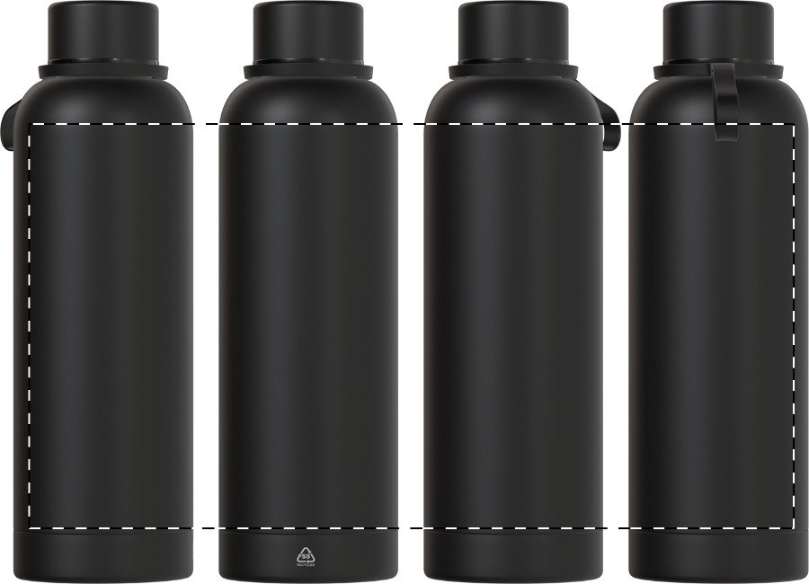 Dvoustěnná vakuová láhev z recyklované nerezové oceli s pogumovanou úpravou a silikonovým páskem, 500 ml.