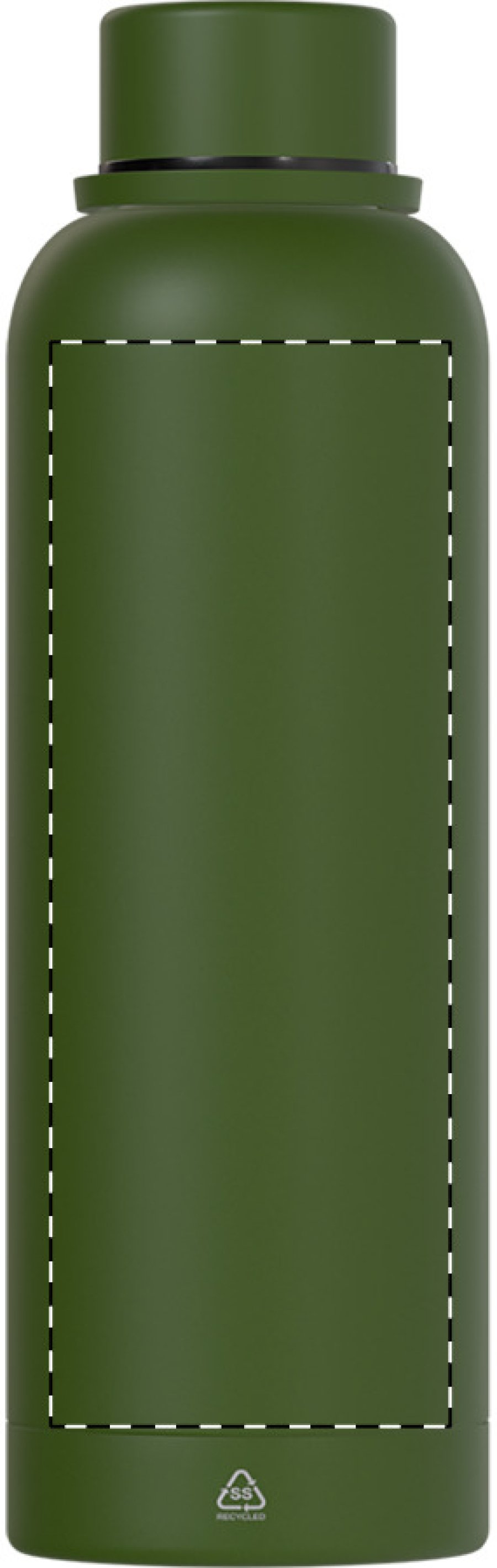 Dvoustěnná vakuová láhev z recyklované nerezové oceli s pogumovanou úpravou a silikonovým páskem, 500 ml.
