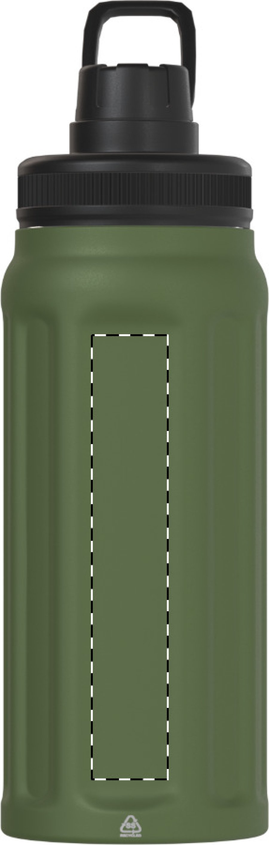 Dvoustěnná termoska z recyklované nerezové oceli s vertikálními drážkami. S víčkem z polypropylenu a s integrovaným držadlem. 540 ml.