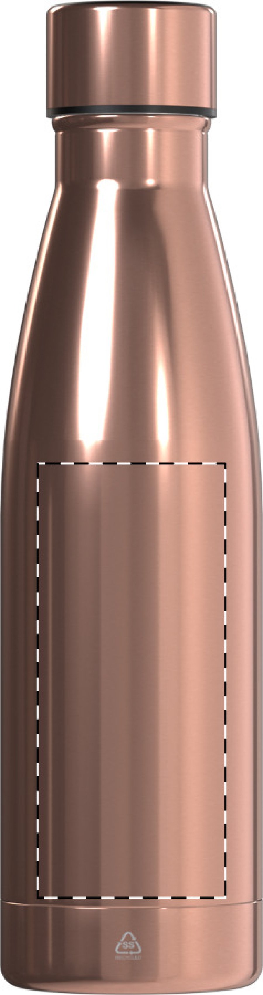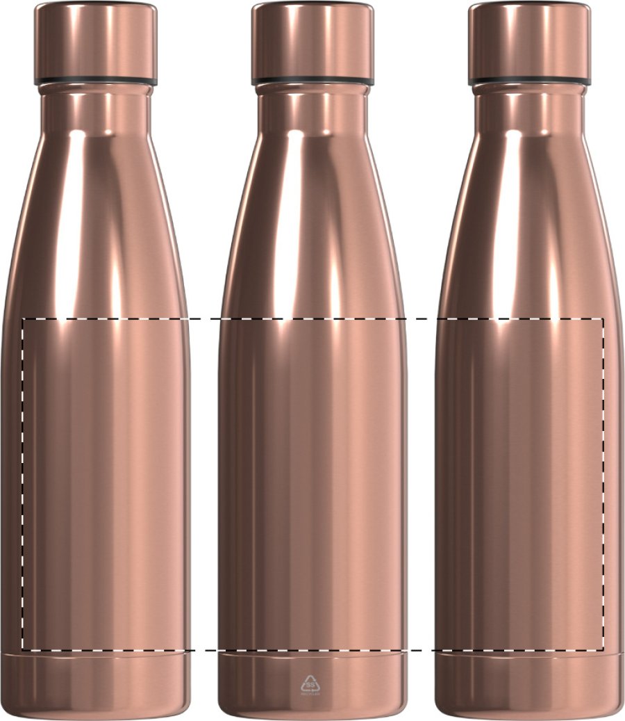 Dvoustěnná vakuově izolovaná měděná láhev s vysoce lesklou kovovou povrchovou úpravou, 500 ml. Měděná izolace udrží nápoje teplé 12 hodin a studené 24 hodin.